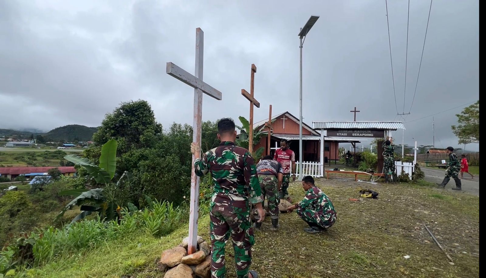 Satgas Swasembada Yonif 751/VJS Sambut Paskah dengan Hias Gereja di Sekitar Pos Kotis Oksibil: Sederhana, Namun Penuh Makna
