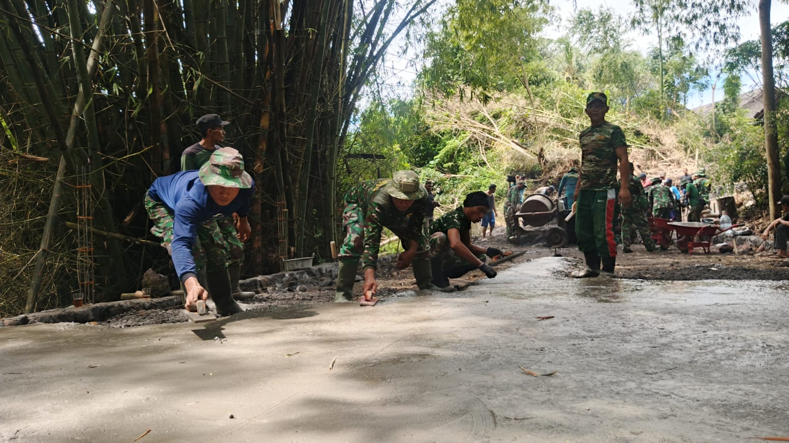 Hari ini pengecoran jalan rabat beton di Padukuhan Konteng Sumberadi sudah menginjak 40 % hal ini tentunya karena hasil kerja keras dan kerjasama antara TNI dan masyarakat yang setiap hari antusias untuk membantu anggota Satgas TMMD.