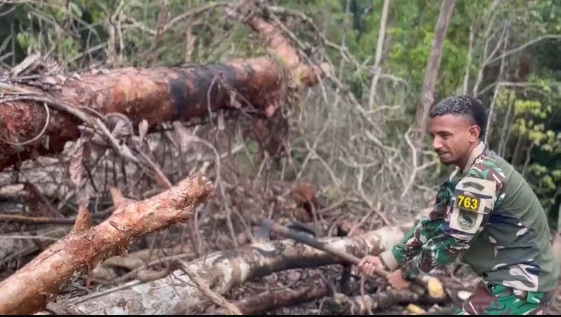 Satgas Yonif 763/SBA Bersihkan Kebun dan Berikan Bibit Kepada Warga