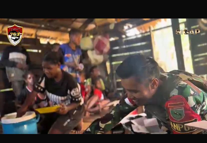 Kegiatan tersebut berlangsung dengan penuh kehangatan dan suasana kekeluargaan. Personel Pos Bamusbama bersama masyarakat duduk bersama menikmati hidangan. Momen ini menjadi wujud nyata bahwa kehadiran TNI di tengah masyarakat bukan hanya sebagai aparat keamanan, tetapi juga sebagai bagian dari keluarga besar masyarakat itu sendiri.