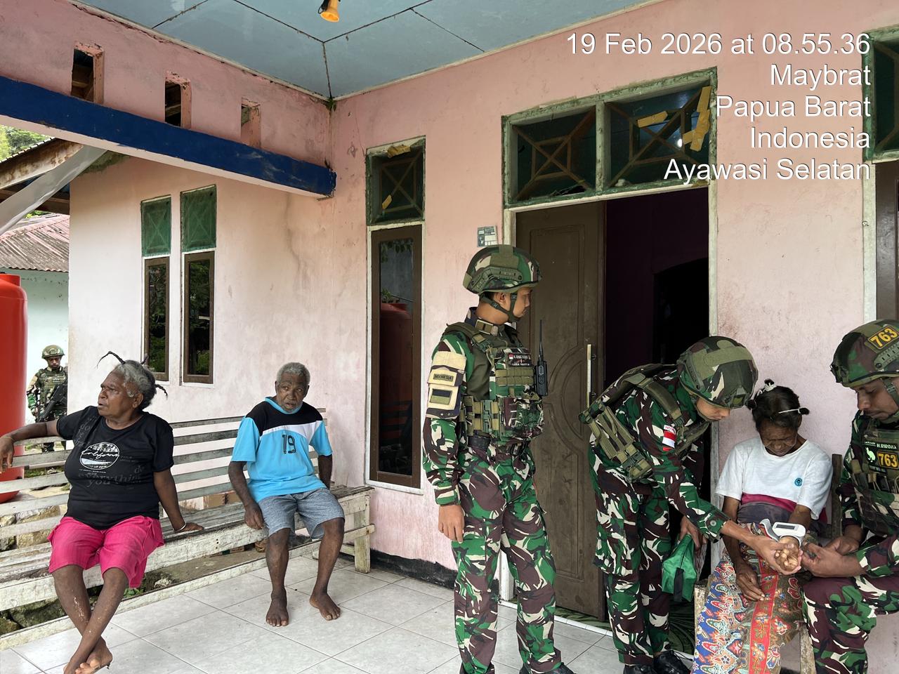 Kokas, Barometer99.com – Dalam rangka meningkatkan pelayanan kesehatan kepada masyarakat di wilayah penugasan, Satgas Pamtas RI–PNG Yonif 763/SBA Pos Kokas melaksanakan kegiatan pemeriksaan kesehatan gratis secara door to door (rumah ke rumah) di Distrik Aifat Utara. (23/02/2026)