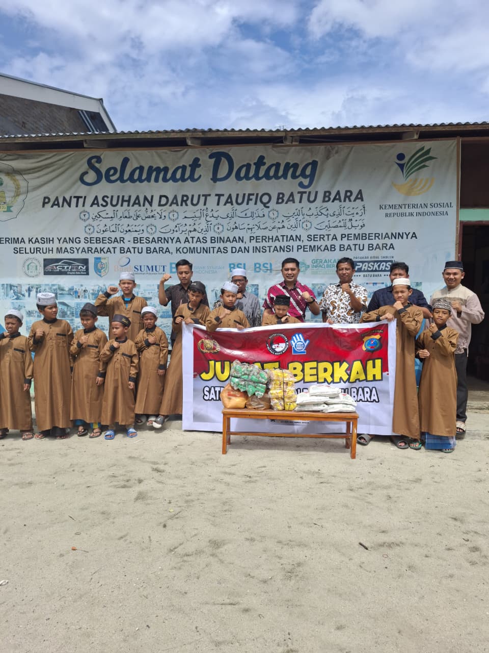 Batu Bara, Barometer99.com – Satuan Reserse Narkoba (Satresnarkoba) Polres Batu Bara melaksanakan kegiatan Jumat Berkah dengan mengunjungi dan memberikan bantuan kepada anak yatim piatu di Panti Asuhan Darut Taufiq, Desa Guntung, Kecamatan Lima Puluh, pada Jumat (27/02/2026). Kegiatan ini dipimpin langsung oleh Kasat Resnarkoba Polres Batu Bara, AKP Arifin Purba, S.H., M.H.