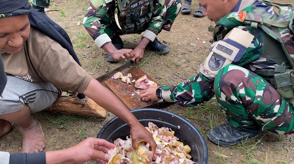 Sejak awal kegiatan, masyarakat terlihat bersemangat bergabung bersama personel Pos Bulangkop untuk menyiapkan berbagai hidangan. Mulai dari proses memasak hingga menyajikan makanan, seluruhnya dilakukan secara gotong royong dengan penuh kebersamaan. Suasana hangat dan kekeluargaan begitu terasa, mencerminkan hubungan yang harmonis antara prajurit TNI dan masyarakat di wilayah perbatasan.