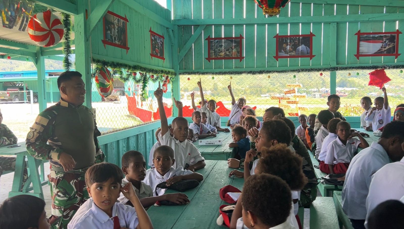 Tidak hanya berbagi makanan, personel Satgas turut mengadakan kuis singkat tentang kewarganegaraan untuk menanamkan jiwa nasionalisme. Materi kuis meliputi pengetahuan dasar seperti Pancasila, simbol negara, dan nilai persatuan. Suasana semakin meriah saat anak-anak antusias menjawab pertanyaan, disambut tepuk tangan dan semangat dari para prajurit.