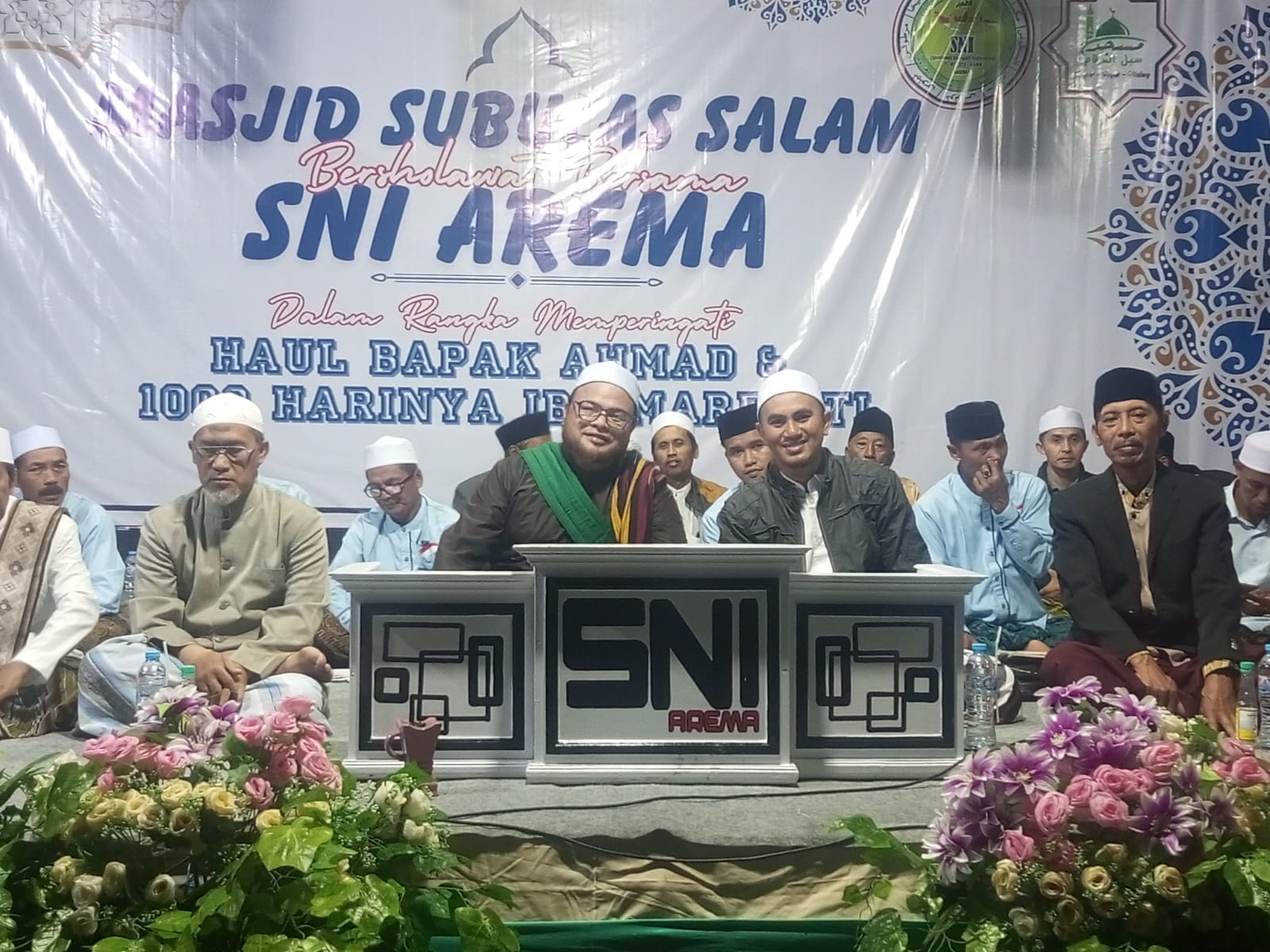 Rangkaian acara diawali dengan pembacaan sholawat bersama yang diiringi lantunan hadrah khas Majelis Sholawat SNI Arema. Jamaah tampak larut dalam lantunan pujian kepada Nabi Muhammad SAW, menciptakan suasana religius yang menenangkan hati dan mempererat ukhuwah islamiyah.