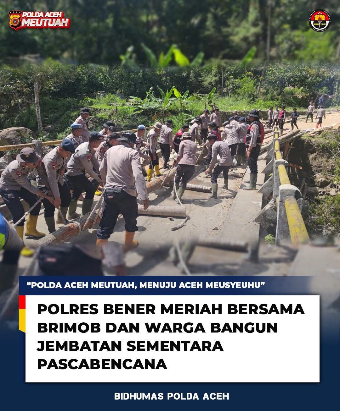 Sinergi Polri dan Masyarakat Bangun Jembatan Sementara di Bener Meriah Pascabencana