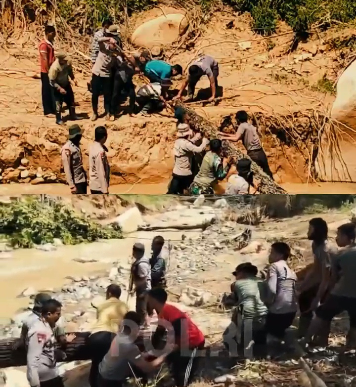 Sinergi Tanpa Batas, TNI Polri Bangun Jembatan Darurat Untuk Warga Linge