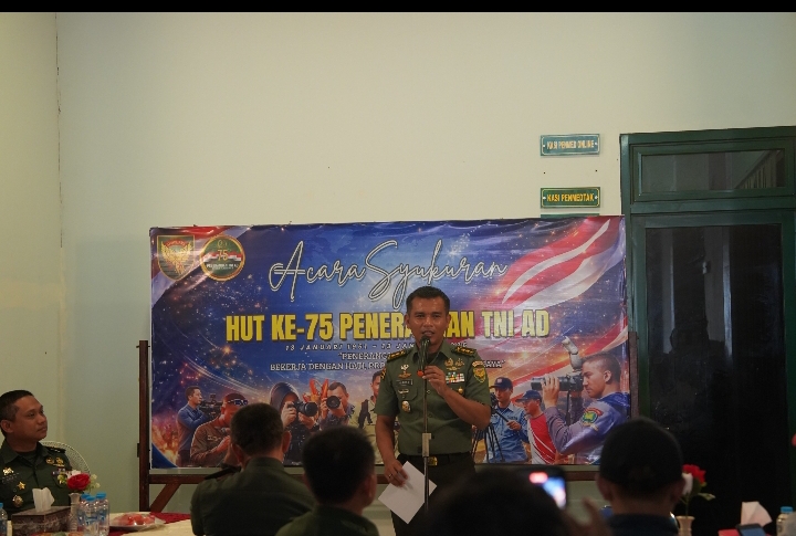 Palembang, Barometer99.com – Penerangan Kodam II/Sriwijaya menggelar acara syukuran dalam rangka memperingati Hari Ulang Tahun (HUT) Ke-75 Penerangan TNI Angkatan Darat Tahun 2026. Kegiatan yang digelar secara sederhana dan berlangsung khidmat ini dilaksanakan di Aula Serbaguna Pendam II/Sriwijaya, Palembang, Rabu (14/01/2026), dengan mengusung tema, *”Penerangan TNI AD, Bekerja dengan Hati, Profesional, dan Terpercaya”*._