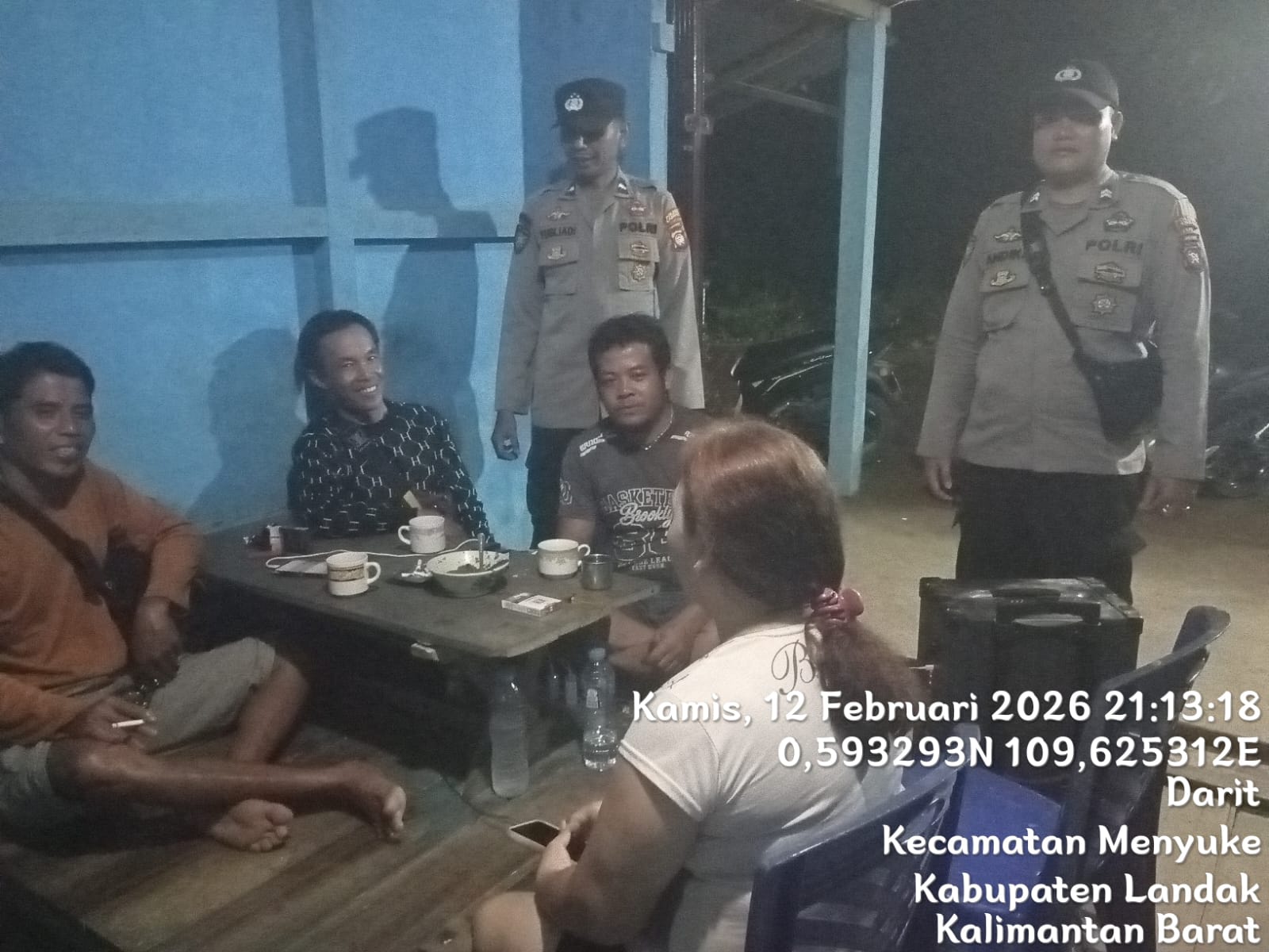 Kapolres Landak AKBP Devi Ariantari, S.H., S.I.K., melalui Kapolsek Menyuke IPTU I Nyoman Astika.SH. Mengatakan bahwa Anggotanya saat melaksanakan patroli malam selalu menyambagi warga yang sedang nongkrong di warung serta memberikan himbauan agar selalu menjaga keamanan dan ketertiban masyarakat.