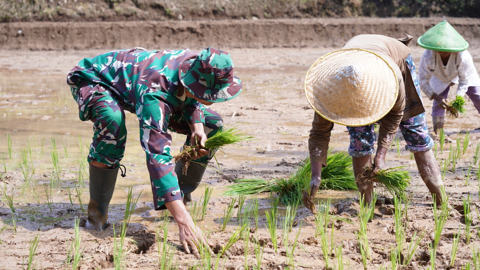 Salah satu aksi nyata terlihat di Dusun Tirtomoyo Desa Krisik di mana sejumlah personel TNI bergabung bersama anggota Gabungan Kelompok Tani (Gapoktan) Nuju Makmur 4. Kehadiran para prajurit ini disambut hangat oleh warga, termasuk Bapak Angga, salah satu petani setempat yang tengah menggarap lahan pertaniannya. Kolaborasi ini bertujuan untuk mempercepat masa tanam dan meningkatkan produktivitas lahan di wilayah tersebut.