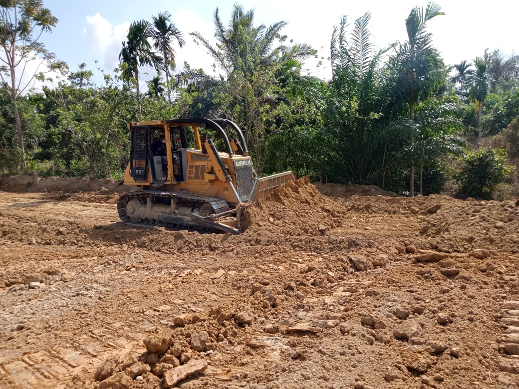 Pekerjaan lahan didukung alat berat berupa satu unit Beko bantuan BNPB dan satu unit Doser dari Kodim 0103/Aceh Utara. Kedua alat tersebut digunakan untuk meratakan kontur tanah yang bergelombang guna mempercepat proses pembukaan lahan.