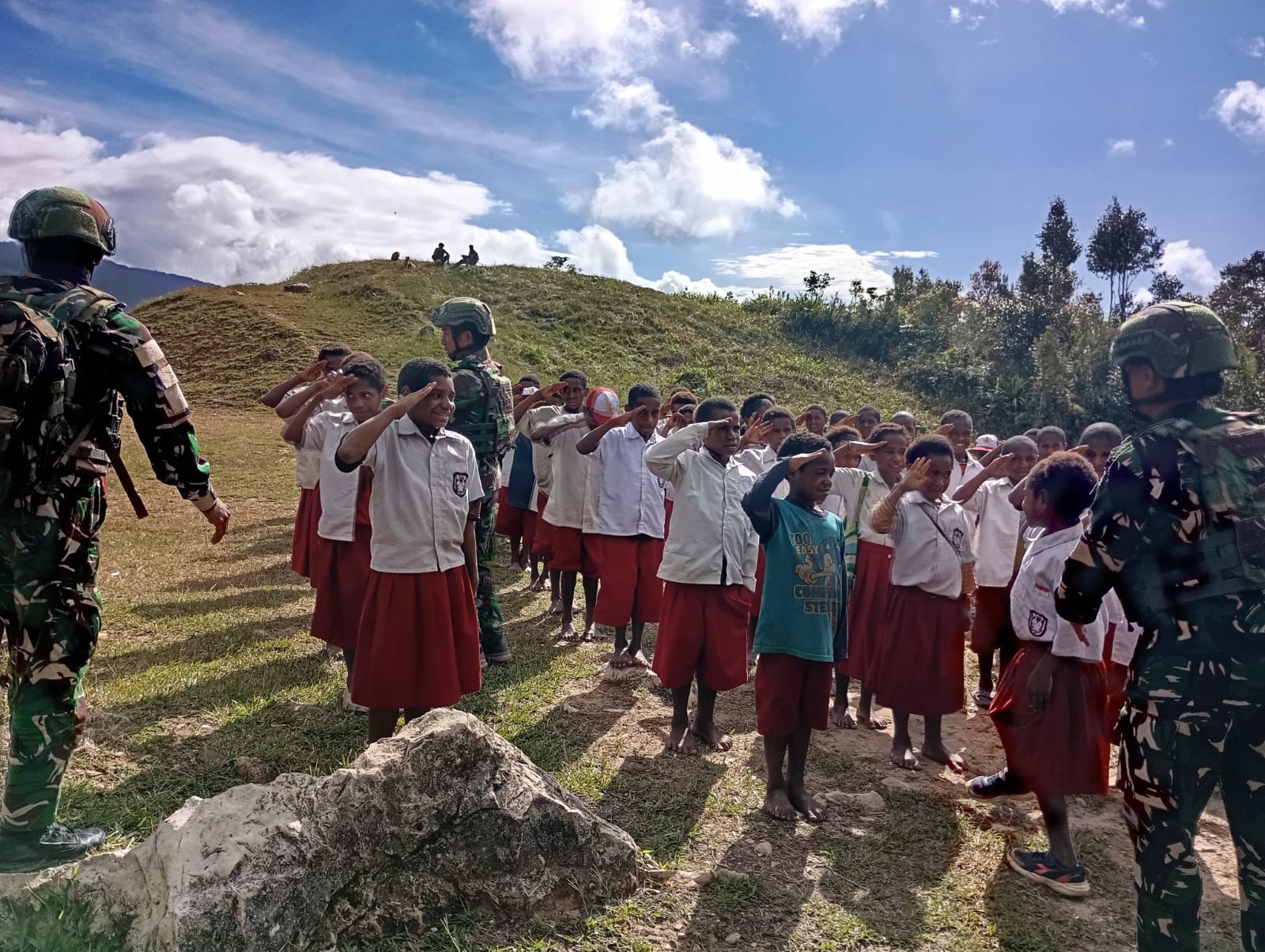 Serambakon, Pegunungan Bintang, Barometer99.com — Pos Serambakon Satgas Pamtas RI–PNG Yonif 751/Vira Jaya Sakti (VJS) melaksanakan kegiatan pembinaan teritorial dengan memberikan wawasan kebangsaan kepada siswa SD Serambakon. Kegiatan ini dirangkai dengan pembagian alat tulis serta penyerahan seragam sekolah bagi anak-anak yang belum memiliki seragam, sebagai wujud kepedulian TNI dalam mendukung pendidikan generasi muda di wilayah perbatasan. (Rabu,4/2/2026).