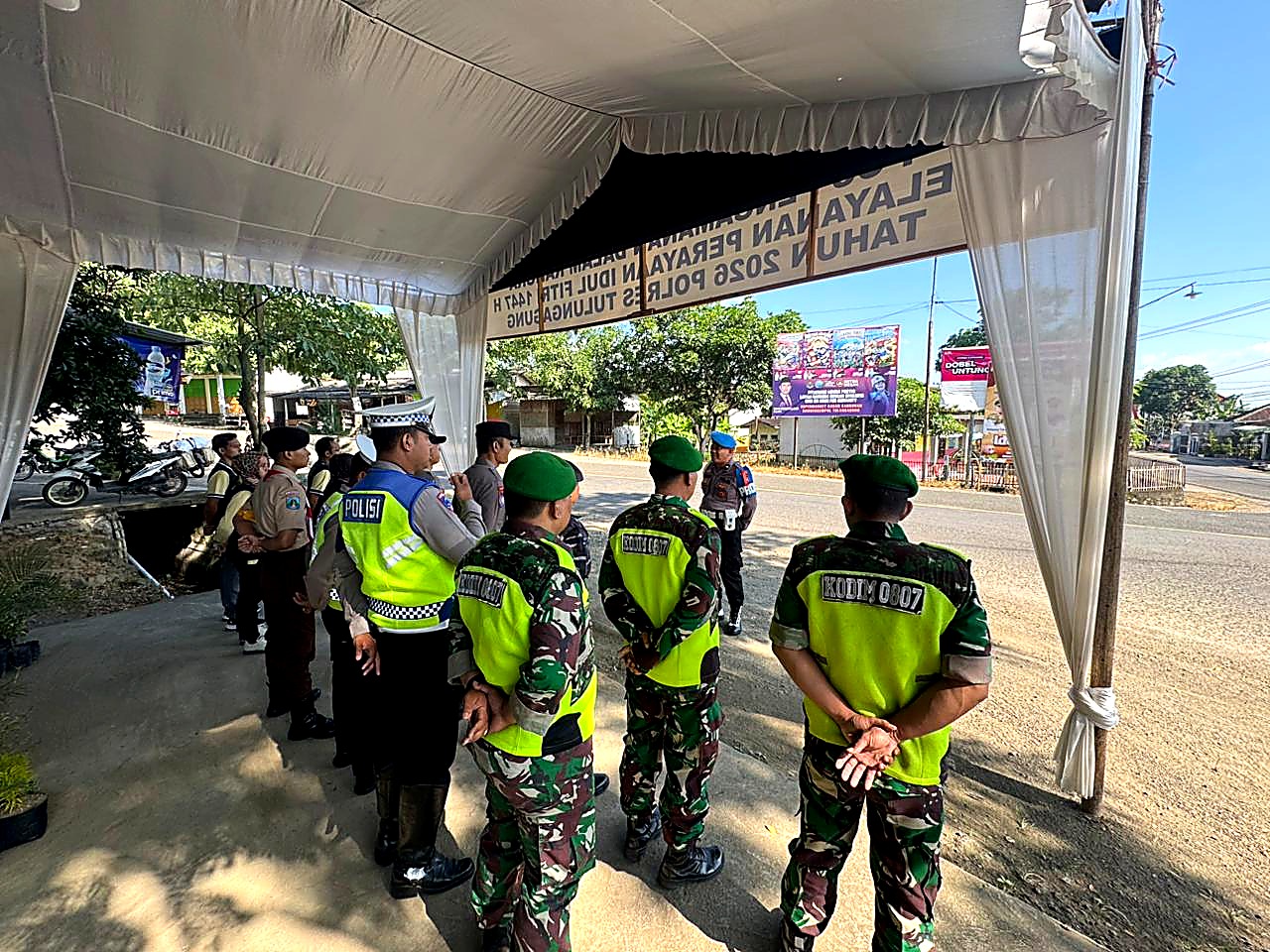 TNI–Polri Bersama Instansi Terkait Amankan Pos Pam Idul Fitri di Pertigaan JLS Besuki