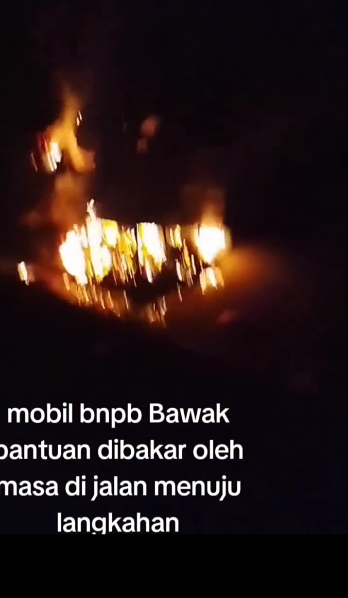 Truk Bantuan Logistik Mogok di Langkahan, Warga Ambil Bantuan dan Diduga Membakar Kendaraan