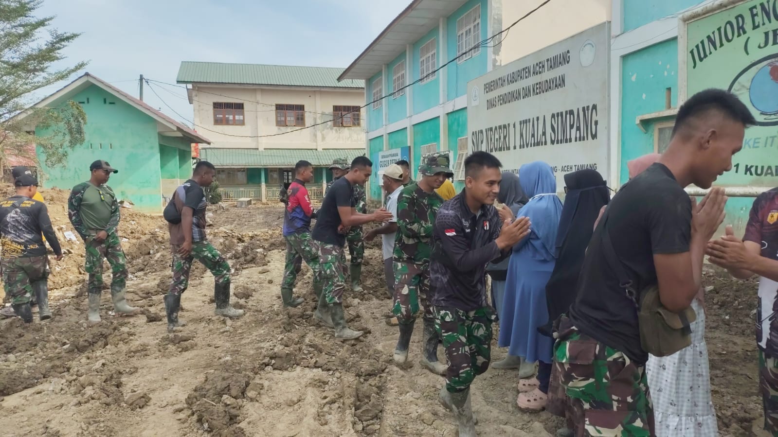 Momen emosional tersebut terjadi di kawasan Kuala Simpang, saat warga dan tenaga pendidik melepas prajurit yang selama masa tanggap darurat tanpa lelah membantu membersihkan lingkungan, fasilitas umum, sekolah, rumah ibadah, hingga akses jalan yang terdampak banjir. Kebersamaan yang terbangun selama penugasan membuat perpisahan terasa berat, baik bagi warga maupun prajurit.