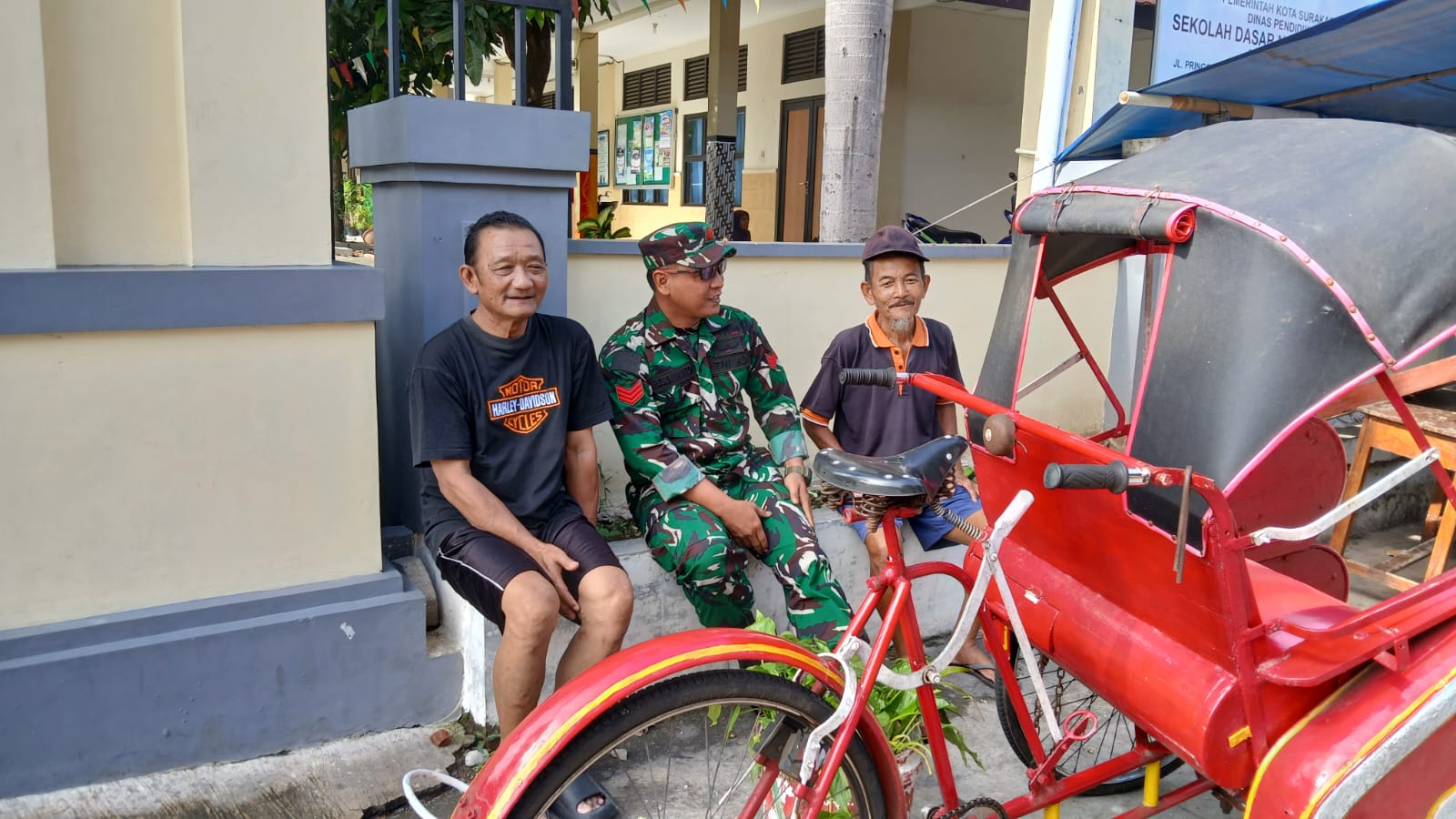 Surakarta, Barometer99.com – Babinsa Katonan Koramil 03/Serengan Kodim 0735/Surakarta Kopka Resbiyanto pukul 09.00 sd Selesai melaksanakan kegiatan Komunikasi Sosial (Komsos) dengan Bapak Wagiman dan rekannya yang bekerja sebagai pengayuh becak di Jl. Pringgondani Kratonan Serengan Kota Surakarta. Jumat (26 Desember 2025).