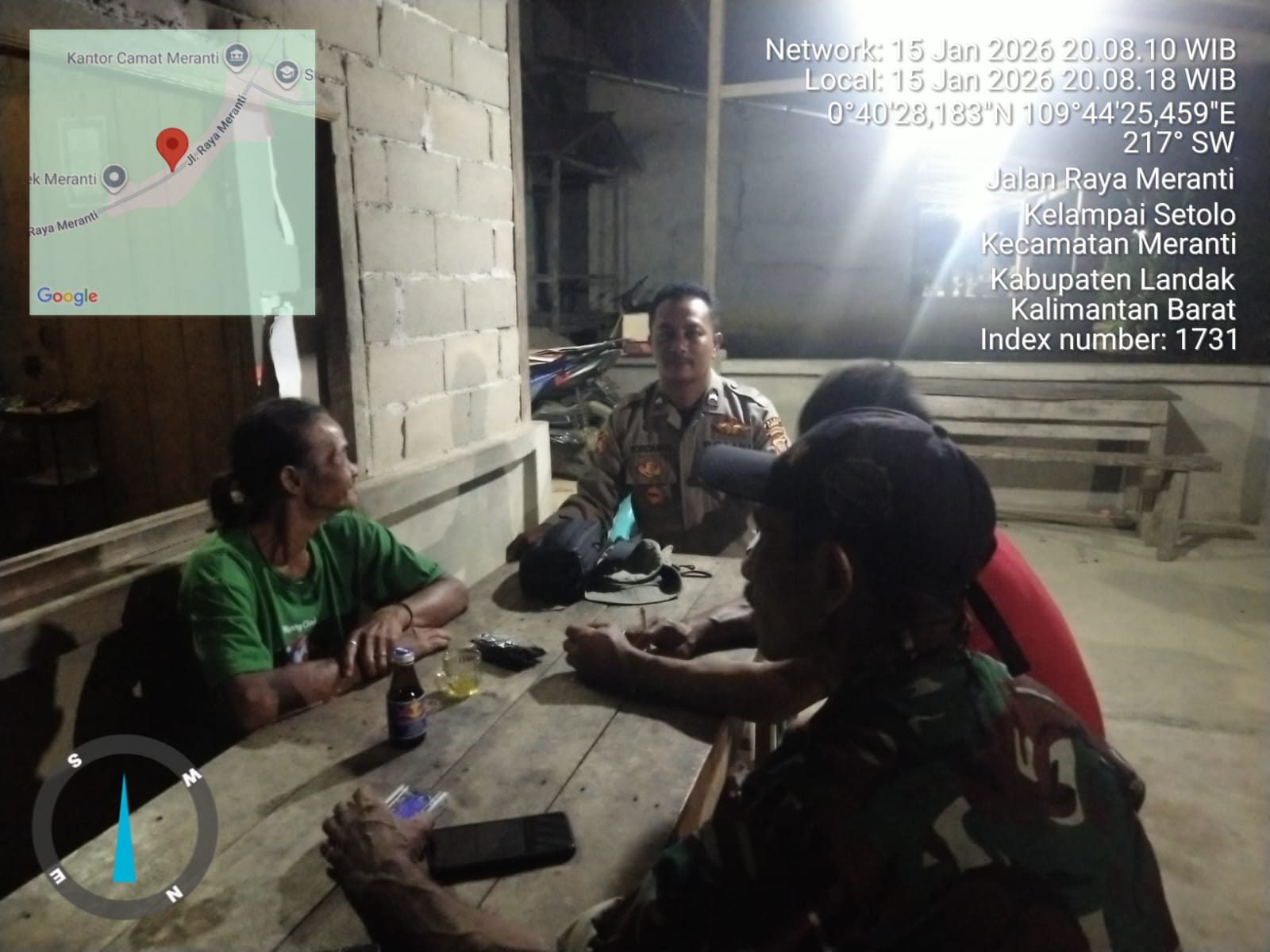 Kapolres Landak AKBP Devi Ariantari, S.H., S.I.K., melalui Kapolsek Meranti Ipda Uwes, S.H., secara terpisah menjelaskan bahwa patroli malam merupakan salah satu langkah preventif kepolisian untuk mencegah tindak kriminalitas sekaligus memastikan situasi wilayah tetap aman dan terkendali.