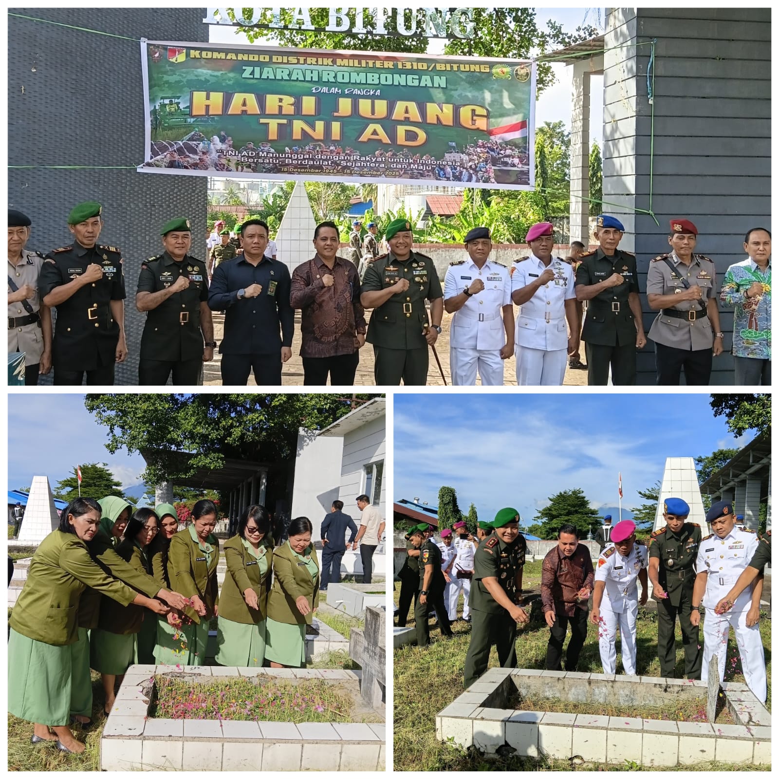 Ziarah rombongan tersebut dipimpin langsung oleh Dandim 1310/Bitung Letkol Inf Dewa Made DJ., dan turut dihadiri oleh Walikota Bitung diwakili Staf ahli Walikota Bitung Bidang Hukum dan Politik, Bpk. Ricy. Y.R. Tinangon, S.STP., Kapolres Bitung Diwakili Kapolsek Maesa, AKP Fery Padama, S.H., Kepala Kejaksaan Negeri Bitung Diwakili Kasie Intel Kejari Bitung, Bpk. Justici D. Wagiu, S.H, M.H., Ketua PN Bitung Diwakili Hakim, Bpk. Sugeng Triyono, S.H, M.H., Dansatrol Kodaeral VIII Diwakili DanKal Patola Satrol Kodaeral VIII, Kapten Laut (P) Mariyono., Danyonmarhanlan VIII Diwakili Pasiops Yonmarhanlan VIII, Kapten Mar Sunaryo., Plt Kaban Kesbangpol Bitung, Bpk. Agus Mamijo, S.E., Pasi Intel Dim 1310/Btg, Kapten Inf Lucas P. Lahama., Pasilog Dim 1310/Bitung, Kapten Inf Abd. Razak., Dansubdenpom XIII/1-2 Bitung, Kapten Cpm Daniel Senen., serta Para Pengurus Persit KCK Cab LXII Kodim 1310 Btg Koorcab Rem 131 PD XIII/Mdk.